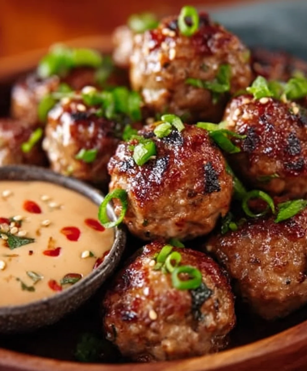 Korean BBQ Beef Meatballs Spicy Mayo Dip Easy Recipe