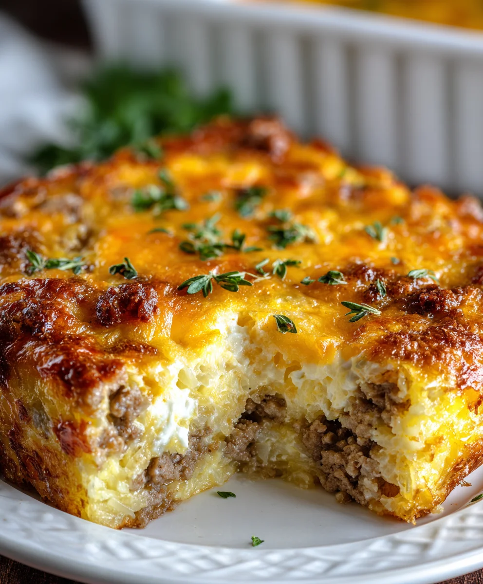 Cheesy Beef Sausage Hashbrown Breakfast Casserole