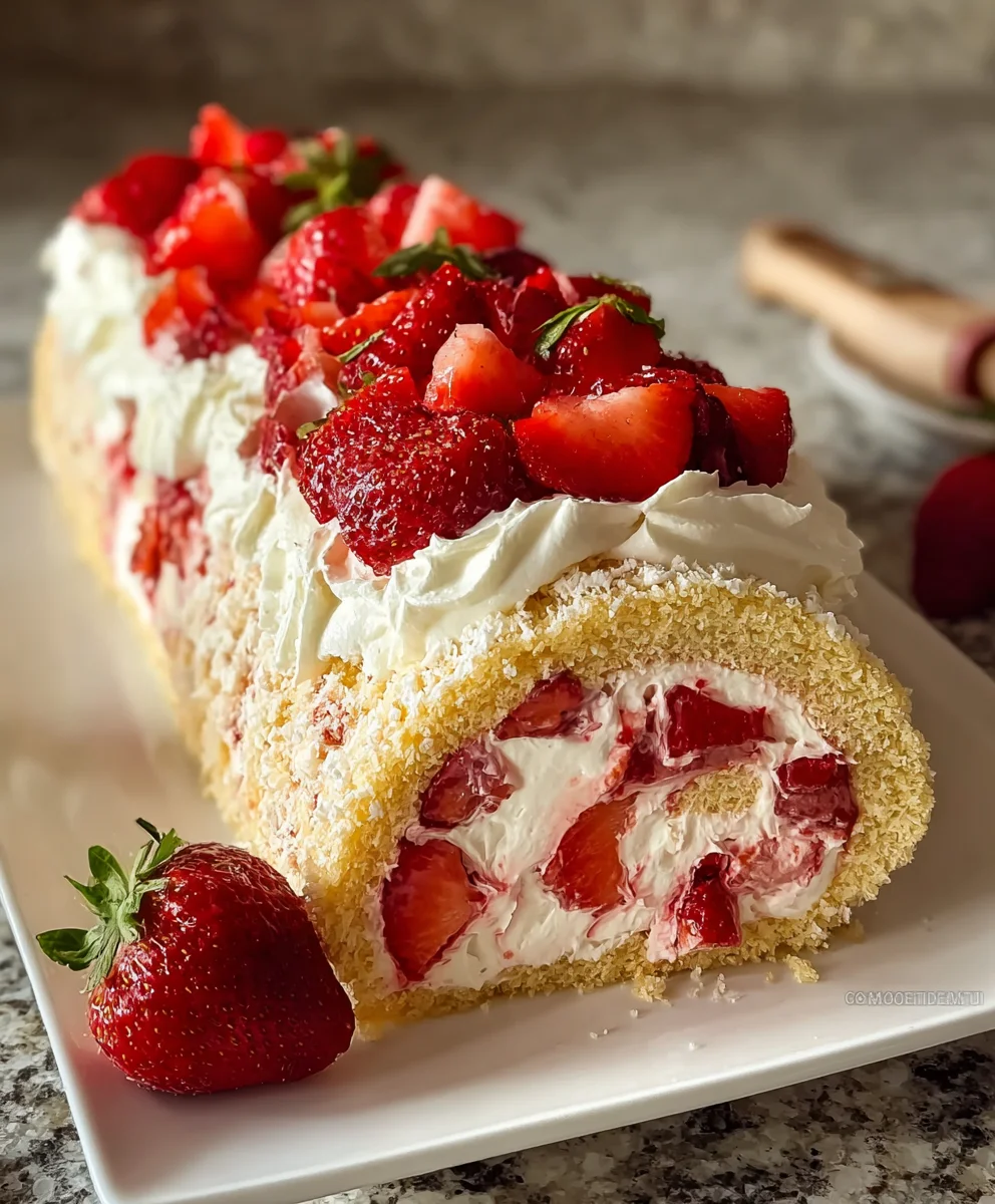 Decadent Strawberry Shortcake Cheesecake Dessert Roll