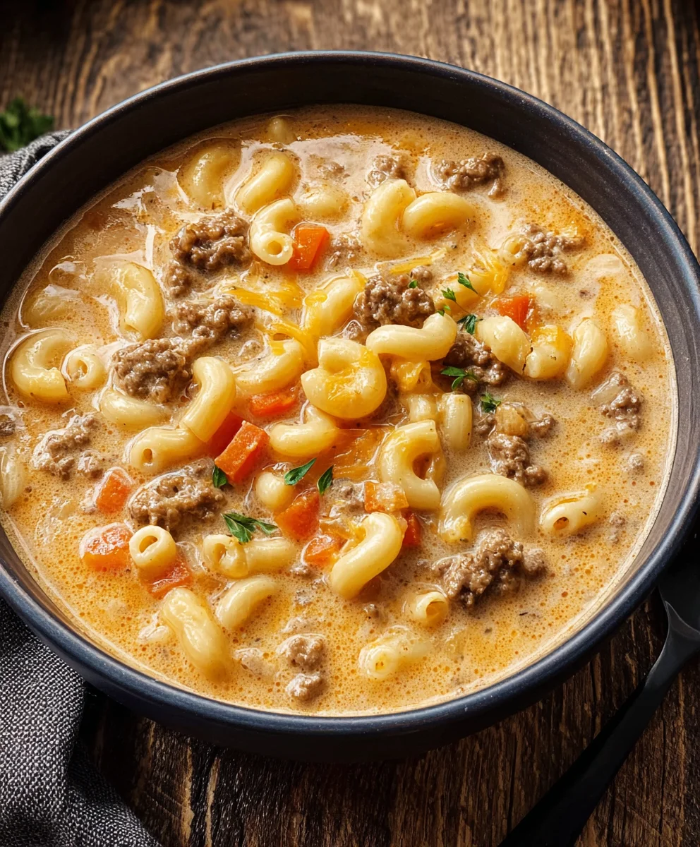 Cheeseburger Macaroni Soup – Creamy Beef Comfort