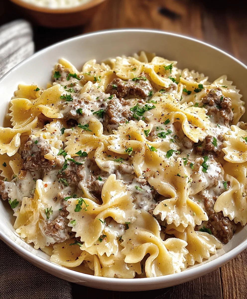 Beef Bowtie Pasta Alfredo – Creamy Delight