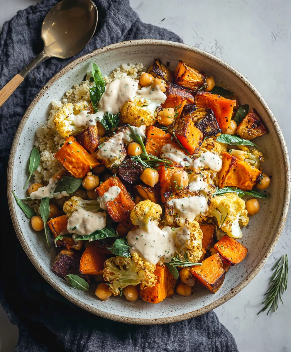 Roasted Veggie Glow Bowl-Tahini Yogurt Sauce