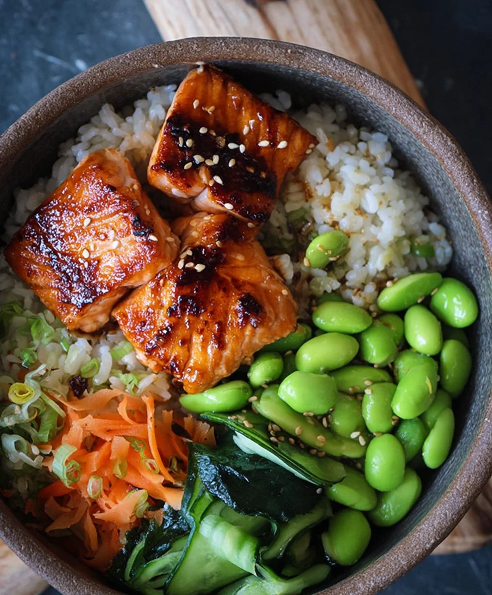Gluten-Free Teriyaki Salmon Sushi Bowl-Easy Recipe