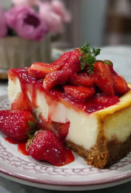 Looking for variations? Try adding a hint of lemon zest to the cheesecake filling for a brighter flavor, or substitute the fresh strawberries with a swirl of strawberry jam for an intensified fruitiness. You could also experiment with different types of cookie crumbs for the base, like graham crackers, shortbread, or even crushed pretzels for a sweet and salty twist. The possibilities are truly endless, and I encourage you to embrace your culinary creativity!